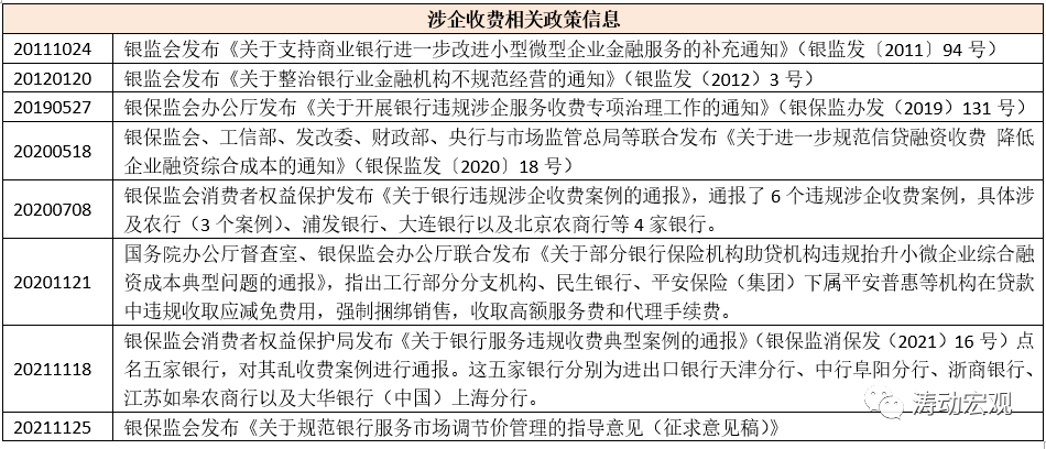 諸多跡象表明,銀保監(jiān)會(huì)近年來對各類亂收費(fèi)、推高企業(yè)綜合融資成本的行為給予了較高程度的關(guān)注,并正強(qiáng)化對金融機(jī)構(gòu)收費(fèi)行為的監(jiān)管,如銀保監(jiān)會(huì)官網(wǎng)多次通報(bào)涉企收費(fèi)案例以及2021年11月25日銀保監(jiān)會(huì)發(fā)布《關(guān)于規(guī)范銀行服務(wù)市場調(diào)節(jié)價(jià)管理的指導(dǎo)意見(征求意見稿)》等,預(yù)計(jì)后續(xù)關(guān)于涉企收費(fèi)問題將迎來新一輪專項(xiàng)檢查,值得關(guān)注。這里面需要遵循的原則包括有沒有提供收費(fèi)服務(wù)的能力(如財(cái)顧咨詢費(fèi)的收取)、提供的服務(wù)與收費(fèi)是否質(zhì)價(jià)相符等兩類。