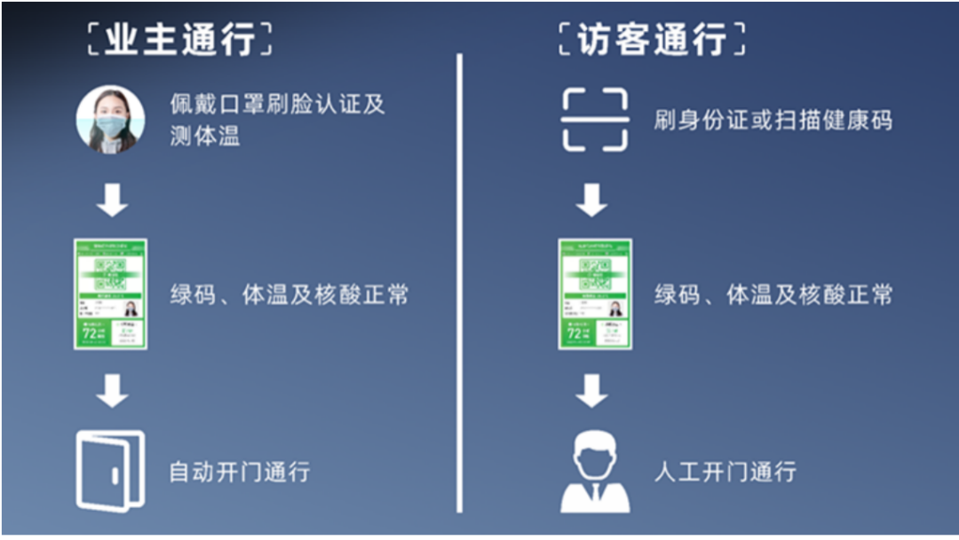 香梅花園通過智能化手段在人行通道部署了人臉識別設(shè)備,在疫情期間設(shè)備開啟口罩識別模式,在人員通行時無需摘取口罩,對于未帶口罩人員進行語音提醒,為疫情防控提供行之有效的方法。