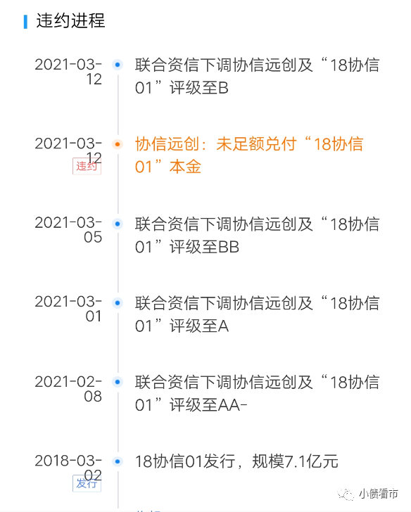 公告顯示,“18協信01”于3月9日到期需兌付,協信遠創僅支付利息,債券本金未足額兌付。