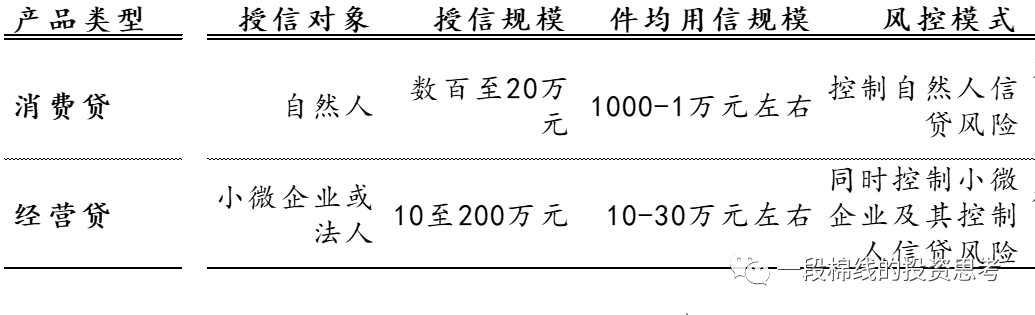 為一線貸款機構(gòu)的潛質(zhì);在經(jīng)營貸領(lǐng)域,具備判斷客戶信用風(fēng)險的獨特數(shù)據(jù)來源,并穩(wěn)定占有100萬名高復(fù)貸率小微客戶的機構(gòu)具備成為一線貸款機構(gòu)的潛質(zhì)。