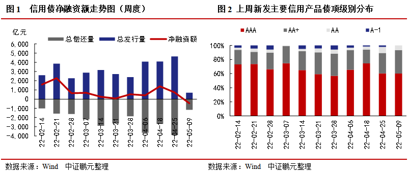 上周信用債發行699.03億元,凈償還460.37億元,分別較前一周下降85%和163%;