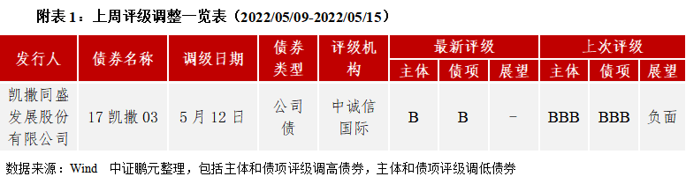 上周債券評級負面調整1只;