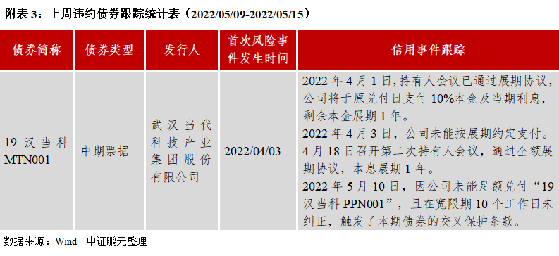 上周發生3起信用風險事件;