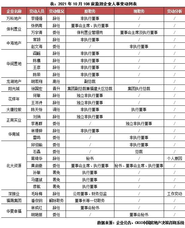 10月,房企高層人事動(dòng)態(tài)信息數(shù)量較前兩月有明顯上升,從108家監(jiān)測企業(yè)的人事變動(dòng)情況來看,不少房企對(duì)組織架構(gòu)進(jìn)行了調(diào)整,高層變動(dòng)頻率和數(shù)量同環(huán)比均有所上升。