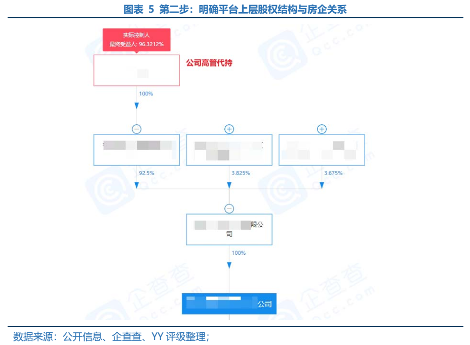 而由于財富平臺多數不由公司直接持股,轉而由高管代持股,從而使得判定上增添一道手續。但是,或由于內部認購資金規模較少,這類表外平臺的藏匿并不如其他表外代持平臺難找,僅需利用法人或股權代持人與該公司名在公開信息搜索即可了解平臺與房企的關聯關系。例如:JZY由執行副總裁WB代持;ZL則由融資管理中心總經理XYF代持;YJL冀中南項目總經理HB等。