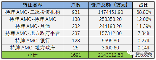按轉讓及受讓主體類型分(只考慮有明確債權金額部分):