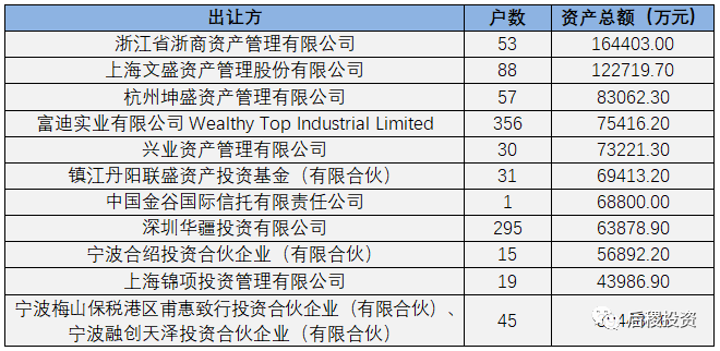 從上圖所知,華融資產、長城資產、江蘇資產位列前三甲,且出讓金額均超過40億元;相比2018年,信達資產和東方資產情況截然相反,分別減幅和增幅近半。成立于2016年5月底的蘇州資產,17年沒有出讓記錄,這兩年出讓金額穩定在20億左右。