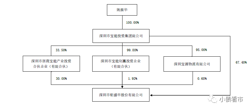 從股權結構看,寶能集團持有鉅盛華67.4%股份為其控股股東,姚振華持有寶能集團100%股份,為公司實際控制人。