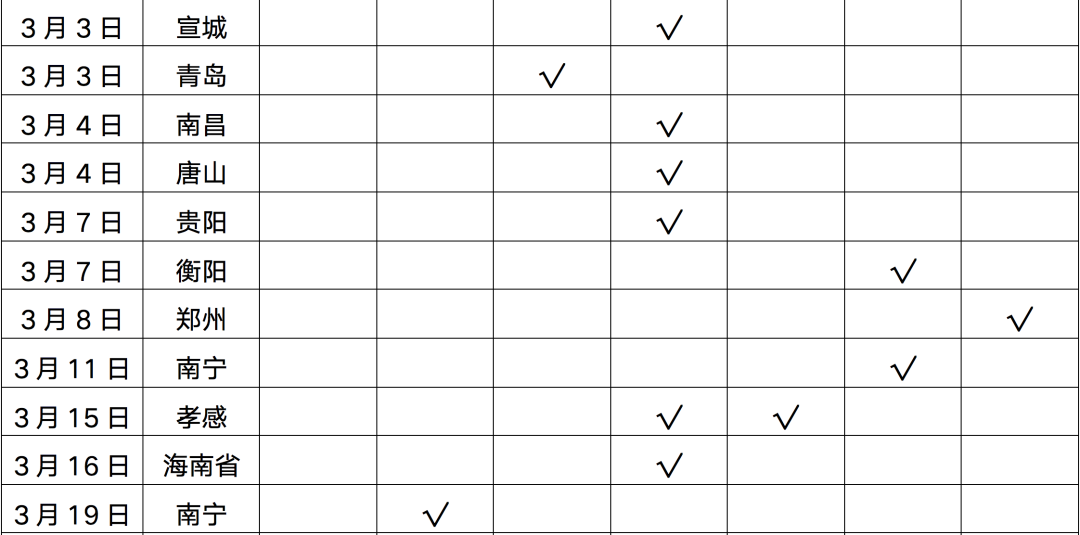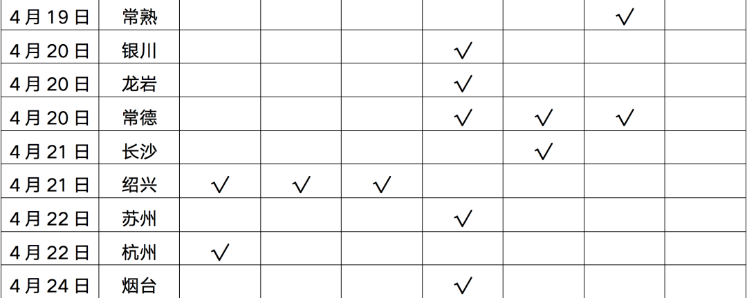 表:2022年1-4月政策松綁城市