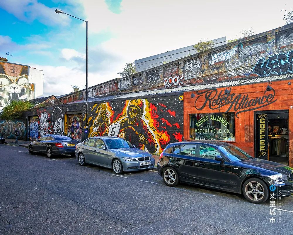 這里也是倫敦最早實行涂鴉合法化的區域,來自全球的涂鴉大師在此創作,吸引到年輕人來此打卡。有了人流量,沿街的商鋪逐漸復蘇。
