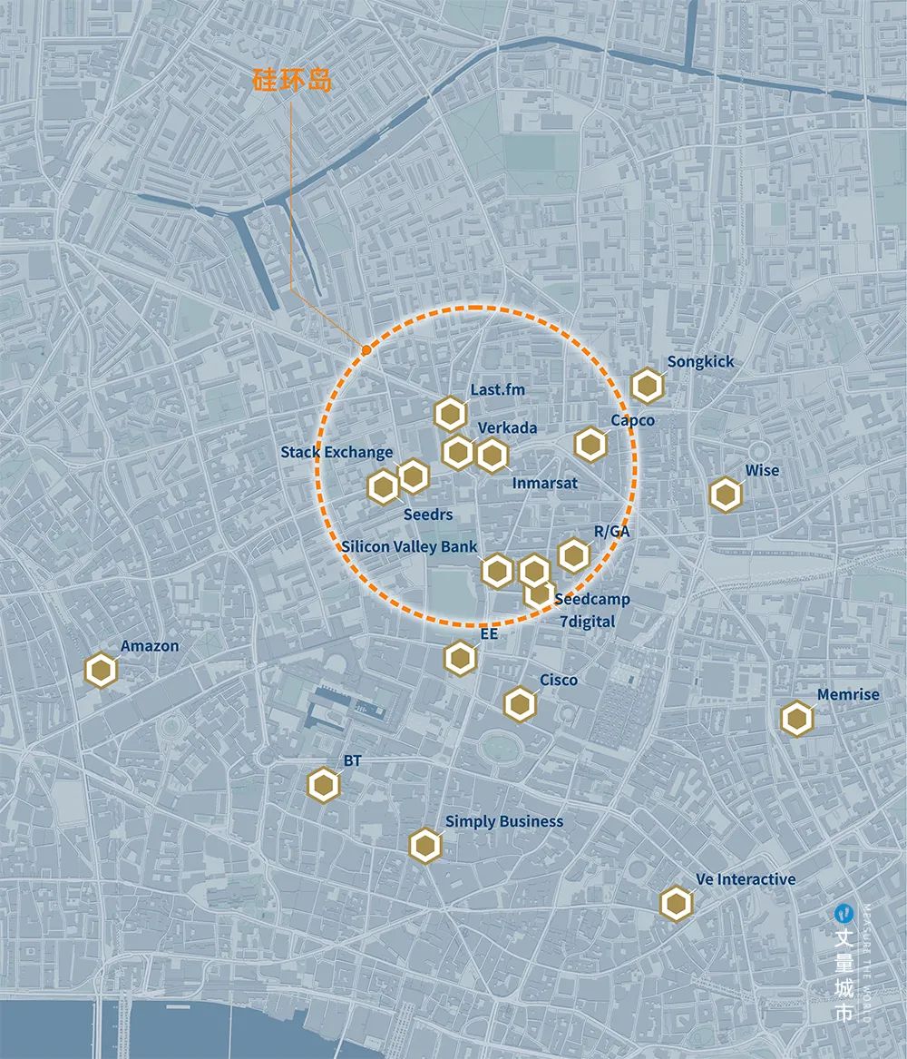 低廉的房租、便利的交通、藝術化的氛圍、潮牌的生活配套,以及靠近金融城資本的優勢,讓Dopplr、Last.fm、Redmonk、MOO、Trampoline Systems、AMEE等30多家互聯網初創企業,扎堆在東區的老街地鐵站(Old Street)周邊。