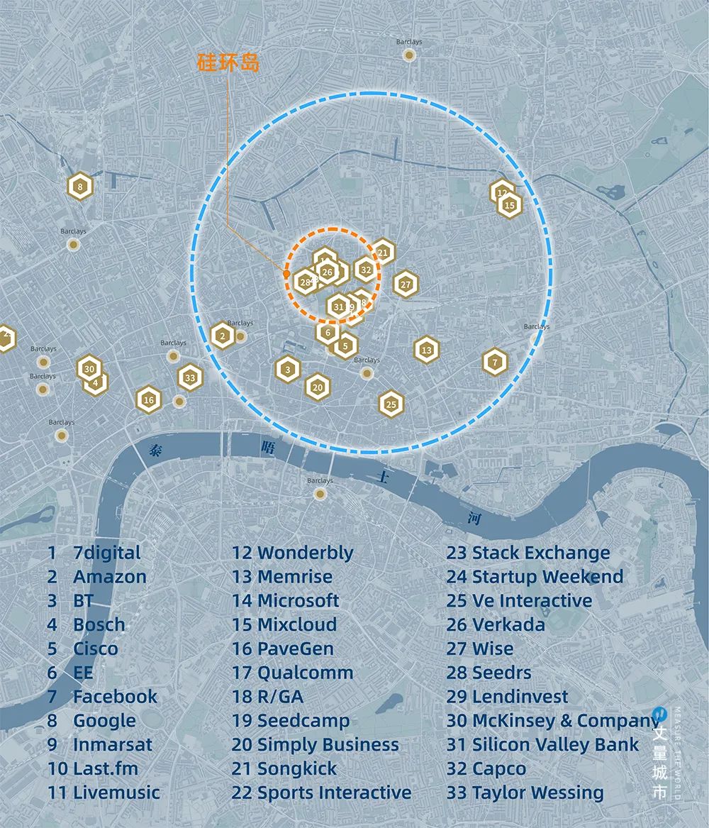 紐約「硅巷」,巴塞羅那「22@知識區」,倫敦「硅環島」……都已給出了明確的答案。其中,從「城市傷疤」逆襲為「倫敦小硅谷」的東倫敦科技城,最具代表性。