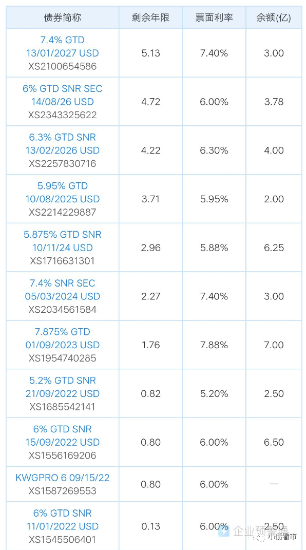 本月初,合景泰富集團(tuán)償還了30億元熊貓債券,其在2022年末前還有160億元到期或可贖回債券,其中包括2022年1月到期的2.5億美元債,以及2022年9月到期的9億美元債。