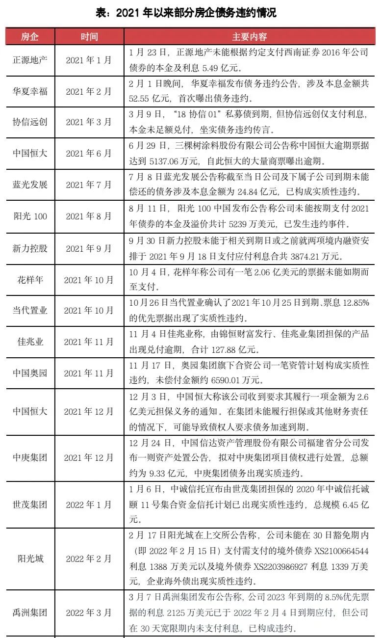 在債務違約方面,本月龍頭房企融創(chuàng)中國和北京房企鴻坤偉業(yè)分別發(fā)布公告稱未能按期支付旗下境外票據(jù)利息,構成了實質性違約,融創(chuàng)也是繼恒大之后又一家出現(xiàn)美元債違約的龍頭房企。整體來看,當前還有不少房企存在流動性問題,因此未來仍有可能有更多房企曝出債務違約事件,仍需要行業(yè)注意。