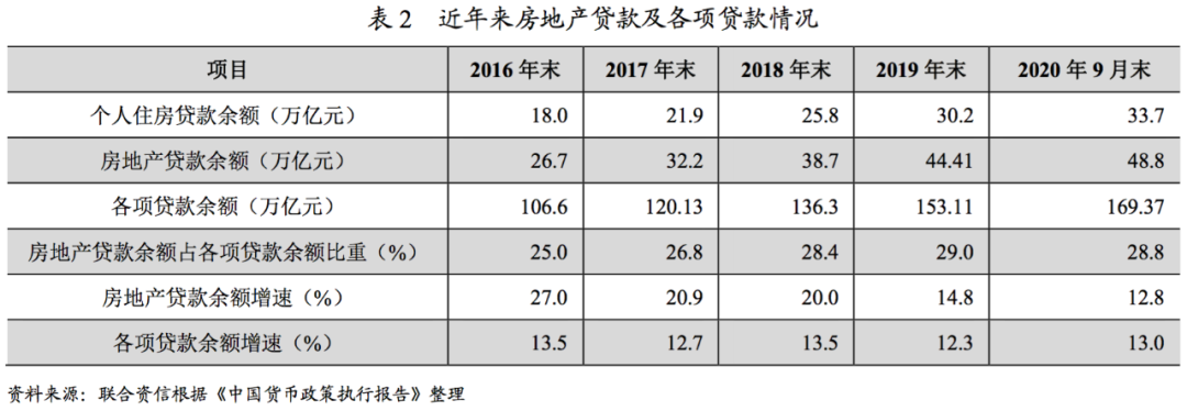 根據(jù)表2,2016-2020年9月末,房地產(chǎn)貸款余額保持增長(zhǎng),但增速逐步下降,逐步向各項(xiàng)貸款余額增速靠攏,同時(shí)中國(guó)人民銀行金融市場(chǎng)市場(chǎng)司司長(zhǎng)2021年1月15日表示,2020年房地產(chǎn)貸款增速8年來(lái)首次低于各項(xiàng)貸款增速,新增房地產(chǎn)貸款占各項(xiàng)貸款比重從2016年的44.8%下降到2020年的28%。我們認(rèn)為此次《通知》的出臺(tái),意在控制房地產(chǎn)貸款增速及房地產(chǎn)貸款在各項(xiàng)貸款中的占比,而不是壓降貸款總規(guī)模。