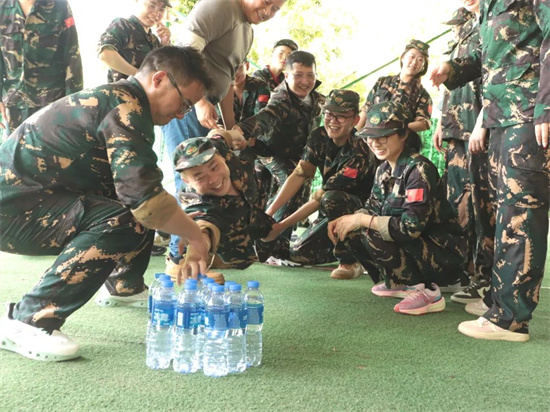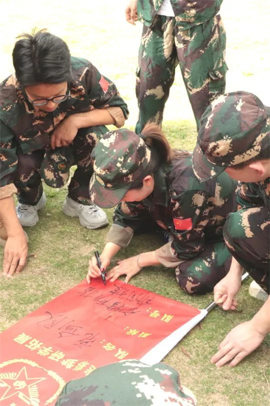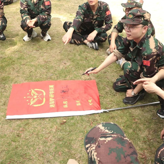士兵突擊、火速變裝完,軍訓(xùn)的感覺(jué)一下就上來(lái)了。經(jīng)過(guò)簡(jiǎn)單的桃花朵朵開環(huán)節(jié)、集合分組、起隊(duì)名、喊口號(hào)一系列操作直接讓我們從開始的拘謹(jǐn)變得士氣滿滿,各團(tuán)隊(duì)就此組建完成。
