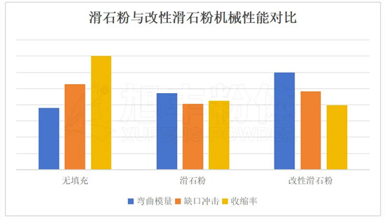 1、滑石粉與改性滑石粉機(jī)械性能對比
