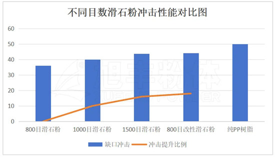 2、不同目數(shù)滑石粉沖擊性能對比